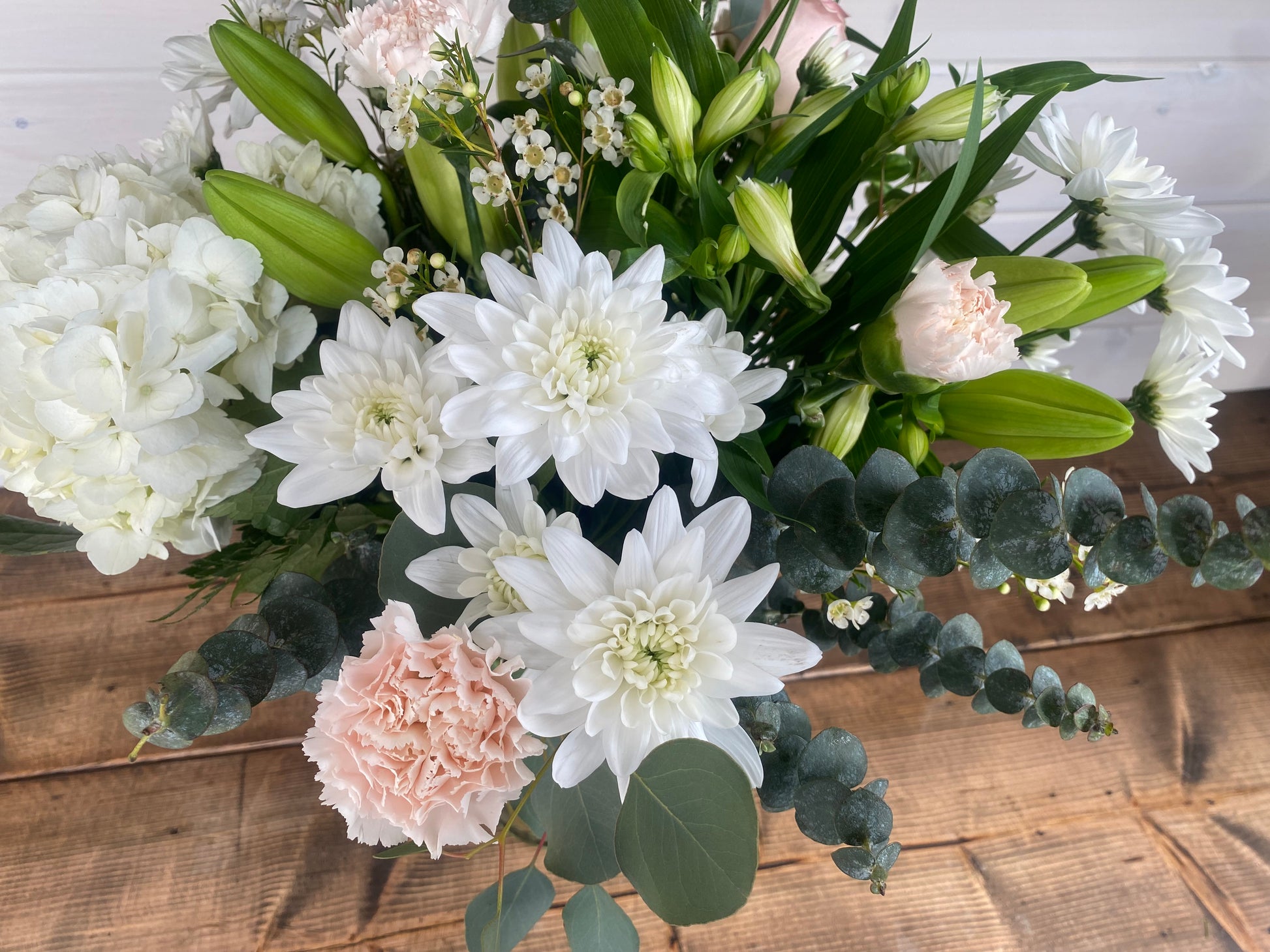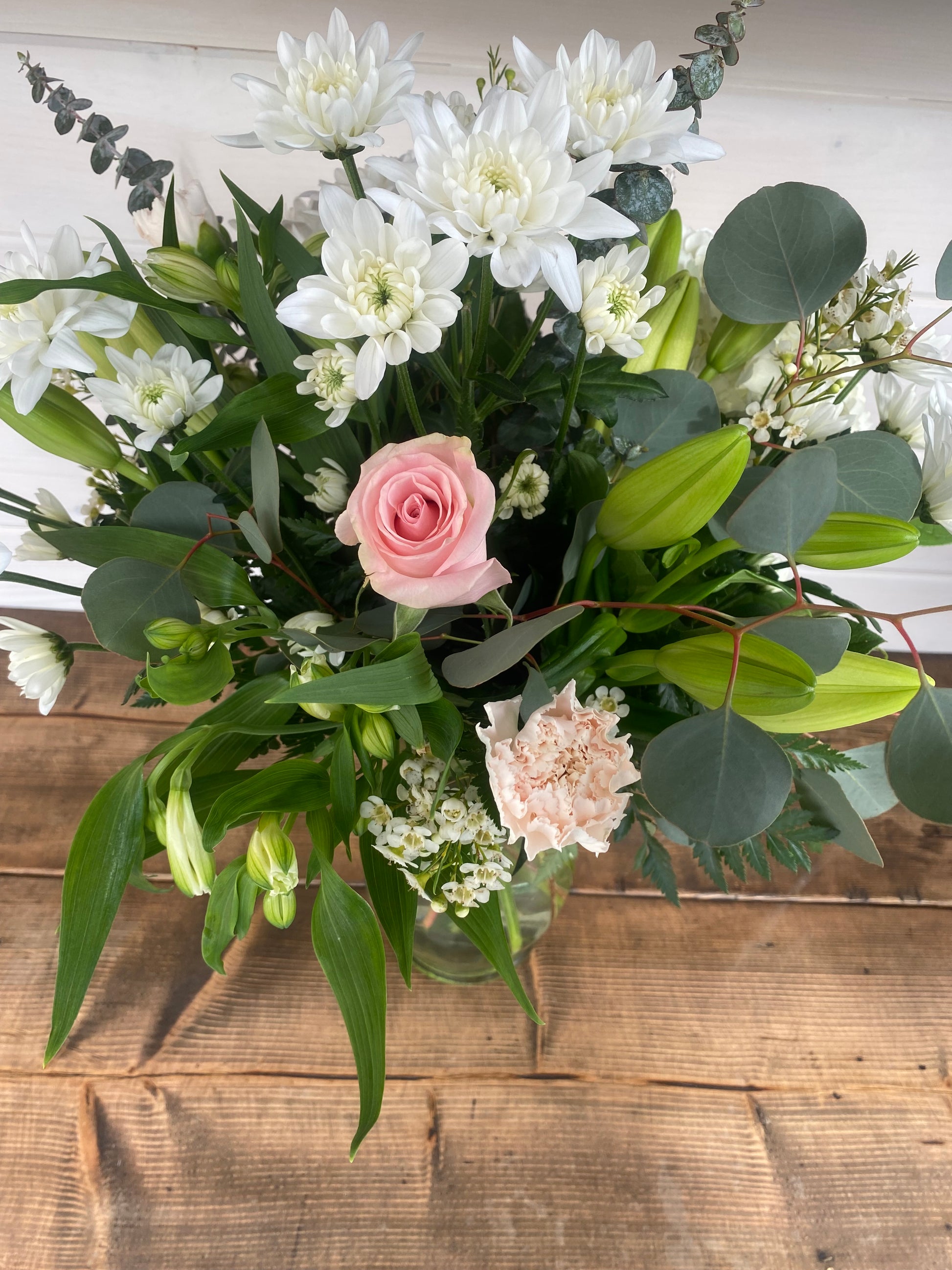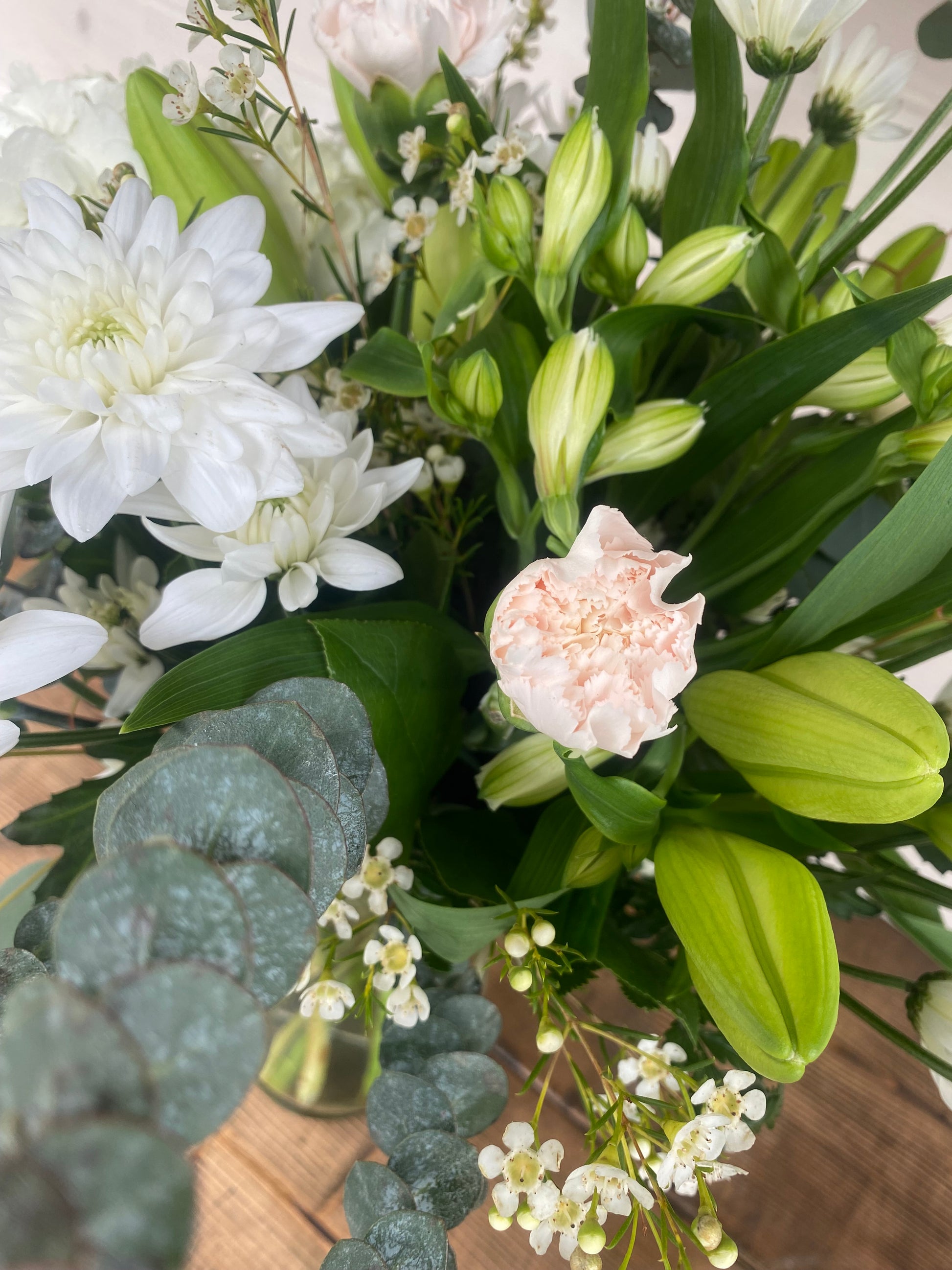 Please note that due to availability and the seasonal nature of flowers, flower choice may vary yet the colour tones pictured will remain the same. Thank you for understanding!